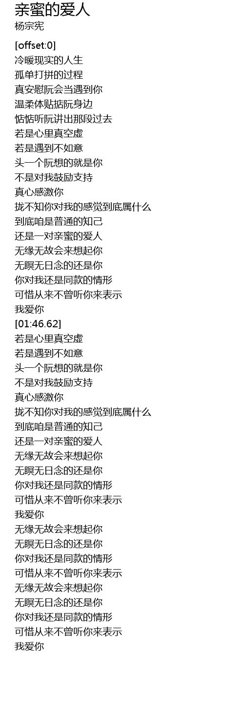 | [01:43.40] | 我爱你 |