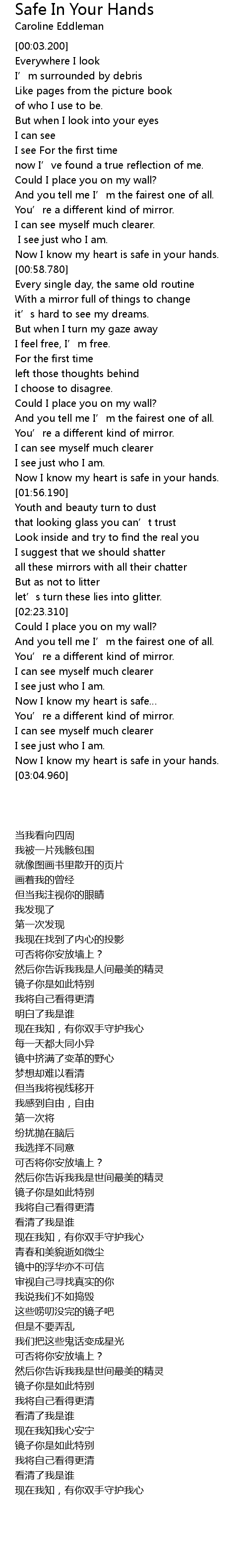 | [01:50.400] | Now I know my heart is safe in your hands. |
