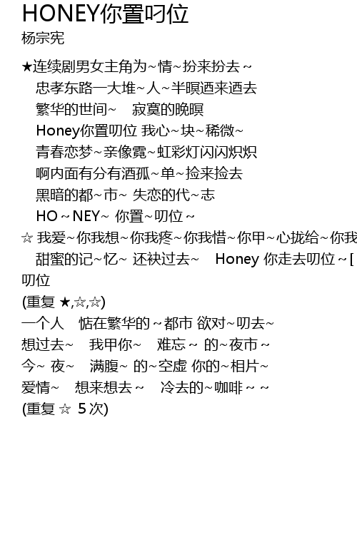 | Honey ni zhi dao wei wo xin kuai xi wei | |