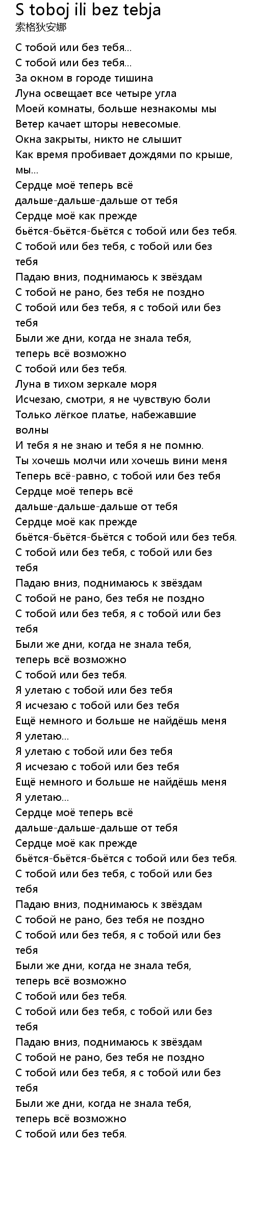 S toboj ili bez tebja Lyrics