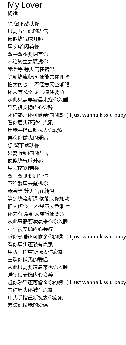 [02:53.100] chen ni shu shui hai ke tou qin ni de zui  I  just  wanna  kiss  u  baby