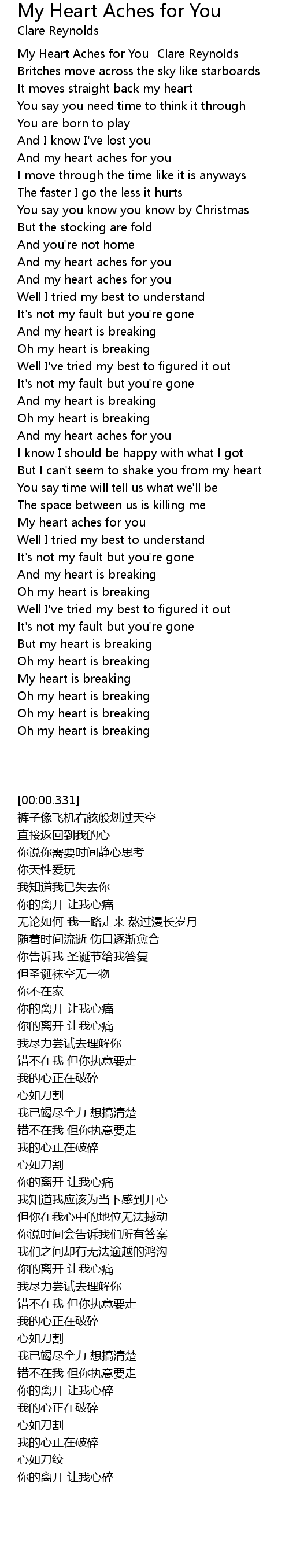 [00:00.331] My Heart Aches for You -Clare Reynolds