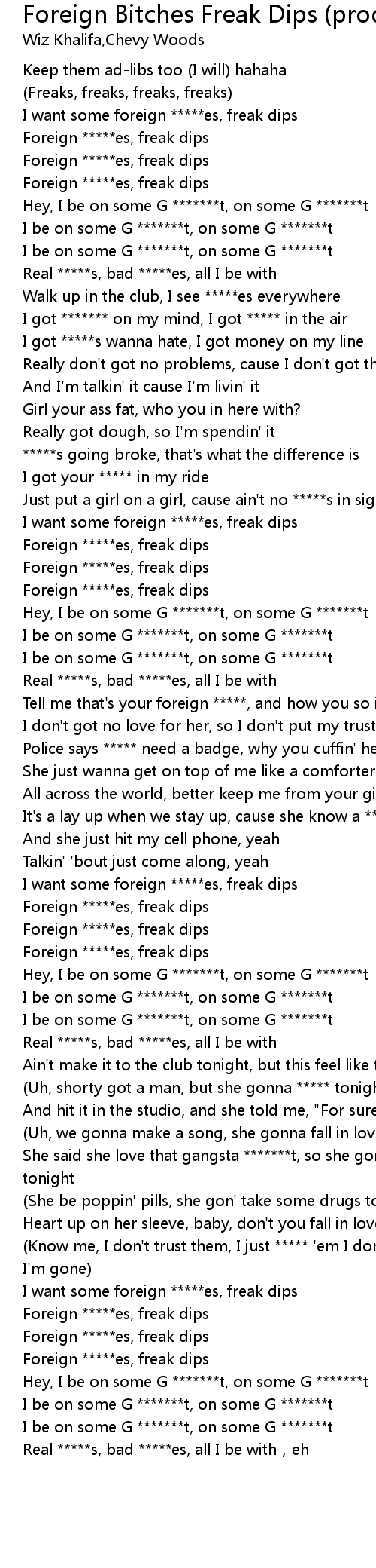 | [00:18.74] | I want some foreign *****es, freak dips |