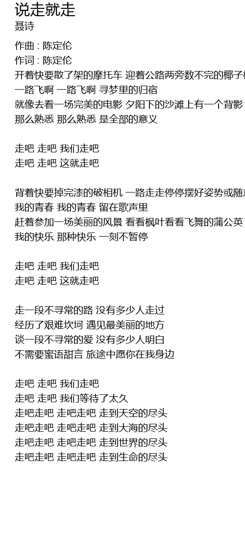 | 走吧走吧 走吧走吧 走到世界的尽头 | |