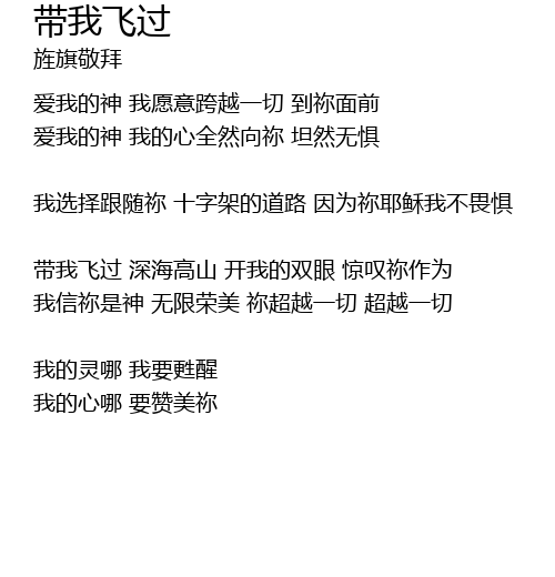 | 带我飞过 深海高山 开我的双眼 惊叹祢作为 | |