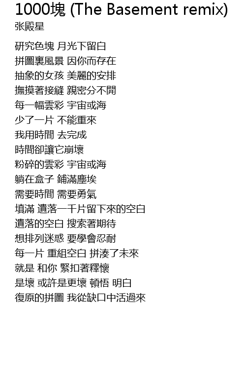 | tian man yi luo yi qian pian liu xia lai de kong bai | |