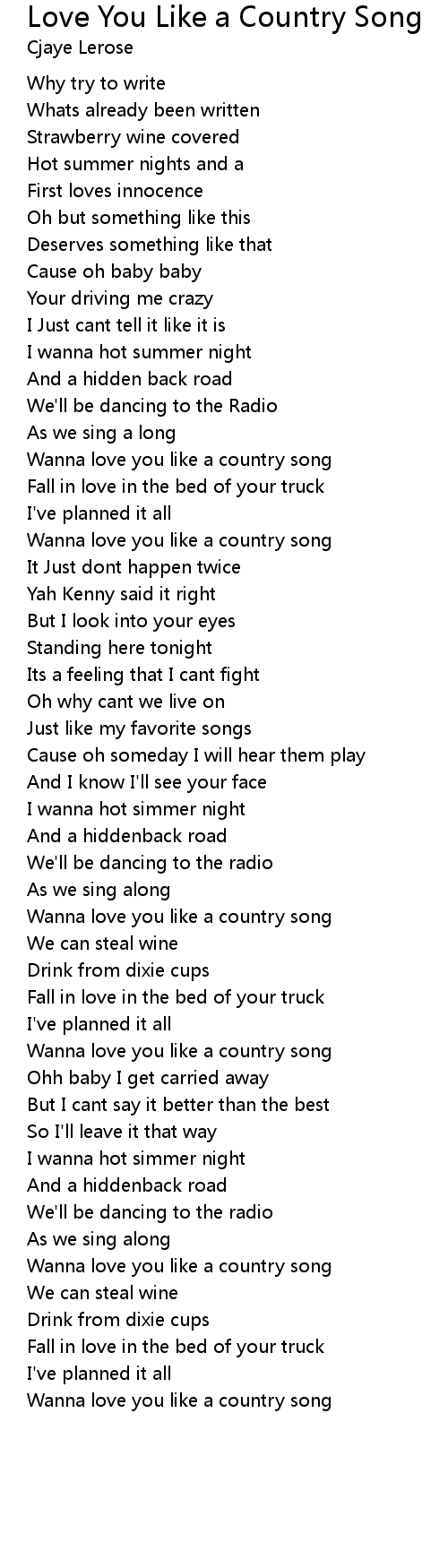 Wanna love you like a country song |