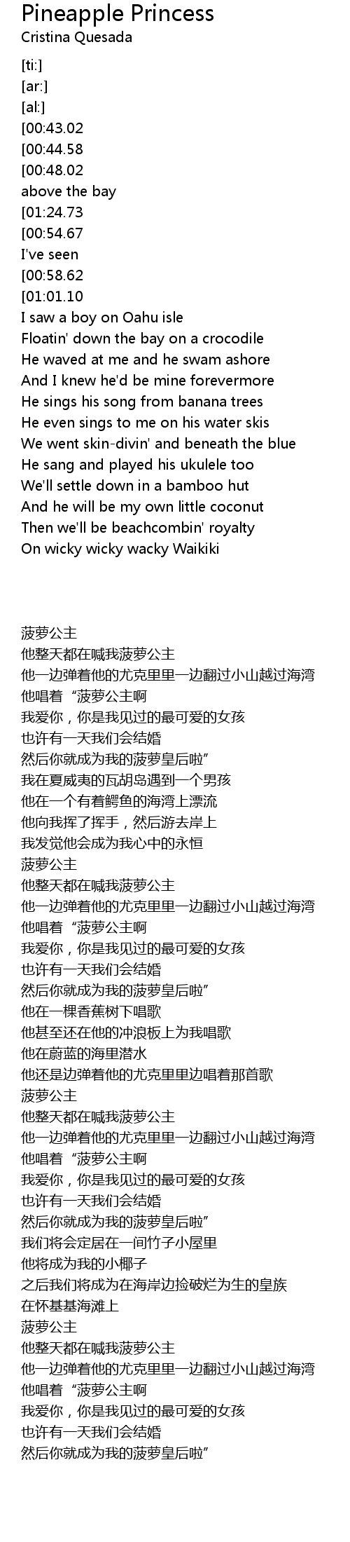 | [02:06.31][00:43.02][00:00.21] | Pineapple princess |