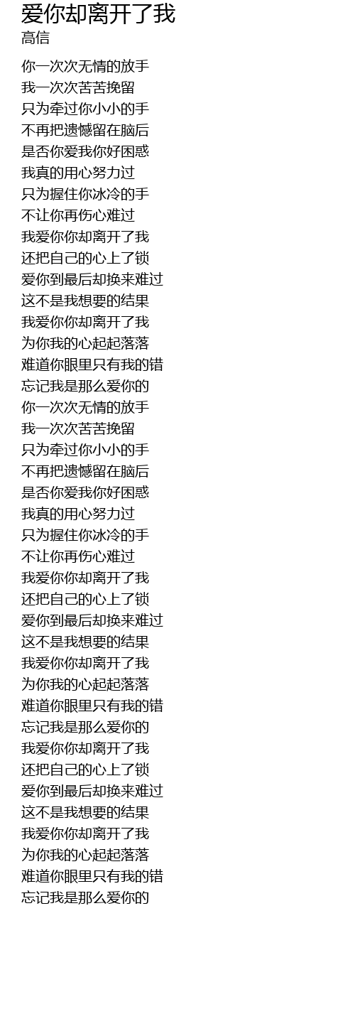 | [02:41.11] | wǒ ài nǐ nǐ què lí kāi le wǒ |