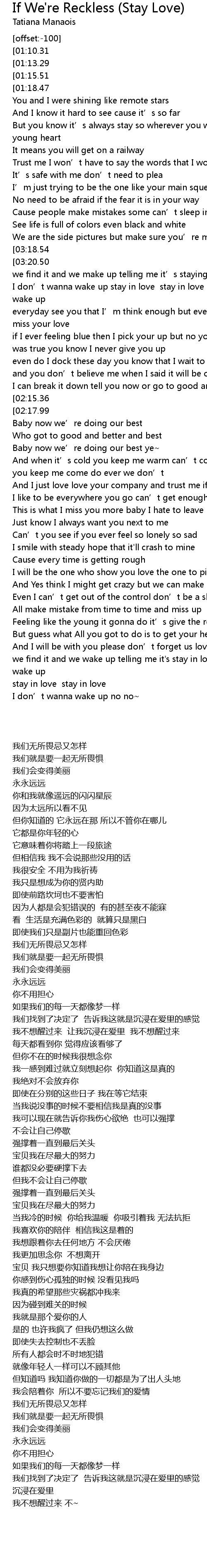 | [00:04.83][01:13.29][03:09.91] | We could be reckless together |