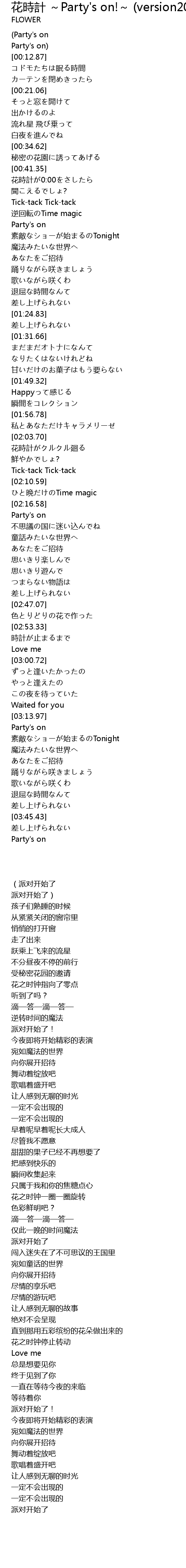 | Song | 花時計 ~Party's on!~ (version2016) |