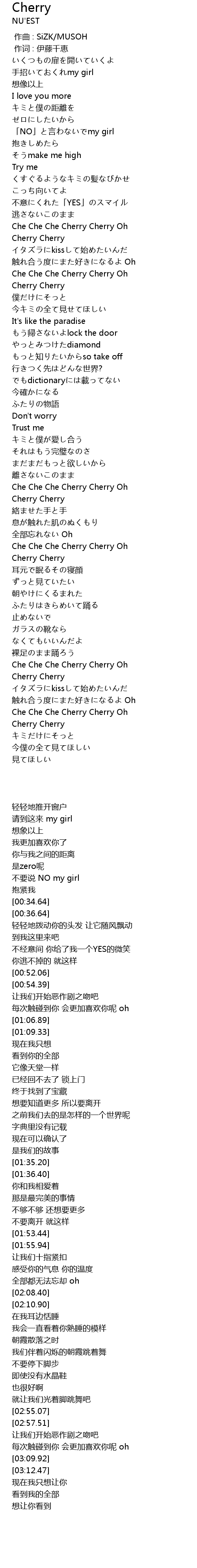 | [01:53.44] | Che Che Che Cherry Cherry Oh |