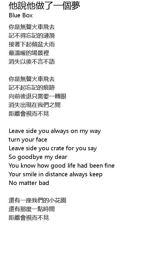 | Album | 如果一個愛作夢的盒子裡,住著一隻來自城市的怪獸 |