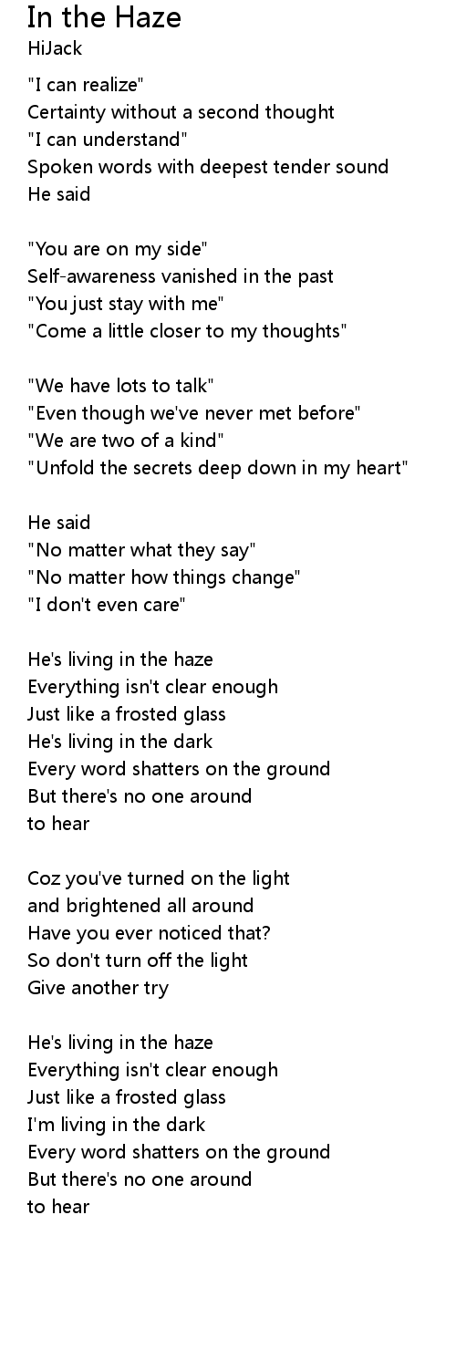 | He's living in the haze | |