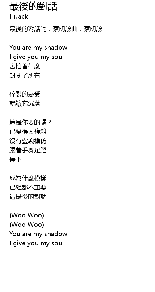 | 最後的對話詞:蔡明諺曲:蔡明諺 | |