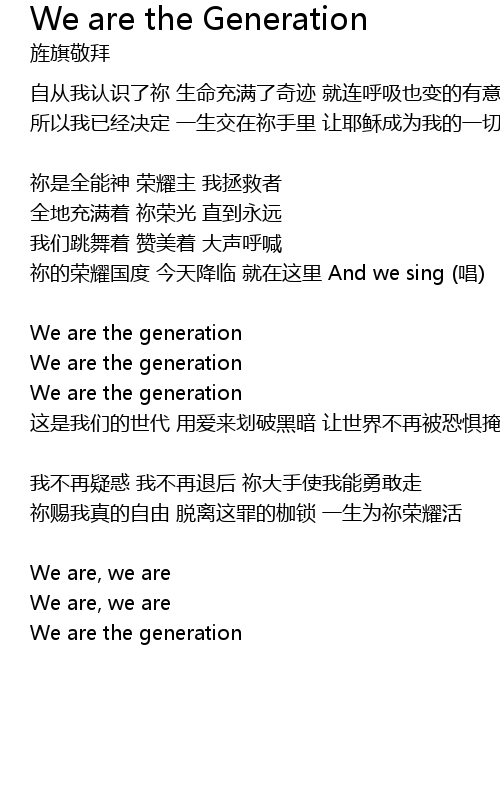 | 祢赐我真的自由 脱离这罪的枷锁 一生为祢荣耀活 | |