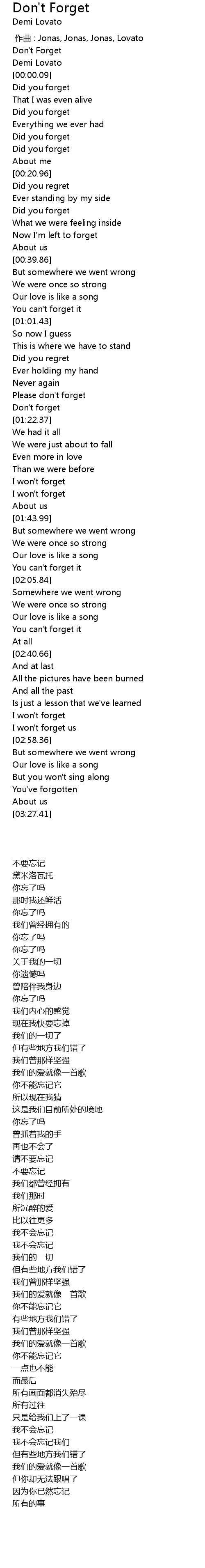 | [00:00.00] | zuo qu : Jonas, Jonas, Jonas, Lovato |