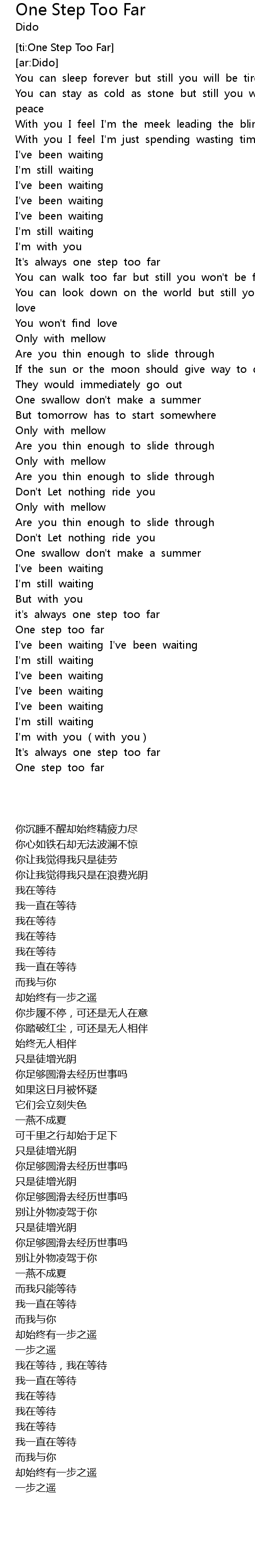 | [01:47.05] | You can walk too far but still you won' t be found |
