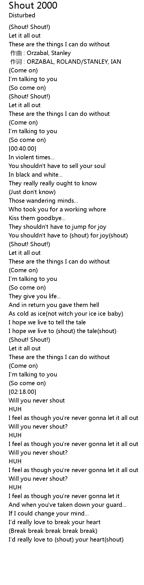 | [02:04.00] | Shout! Shout! |
