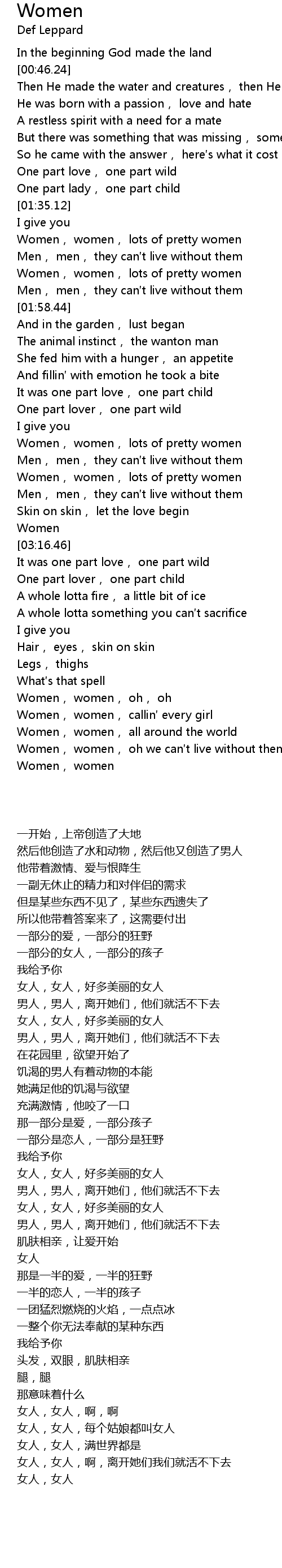 | [04:45.59] | Women, women, oh we can′t live without them |