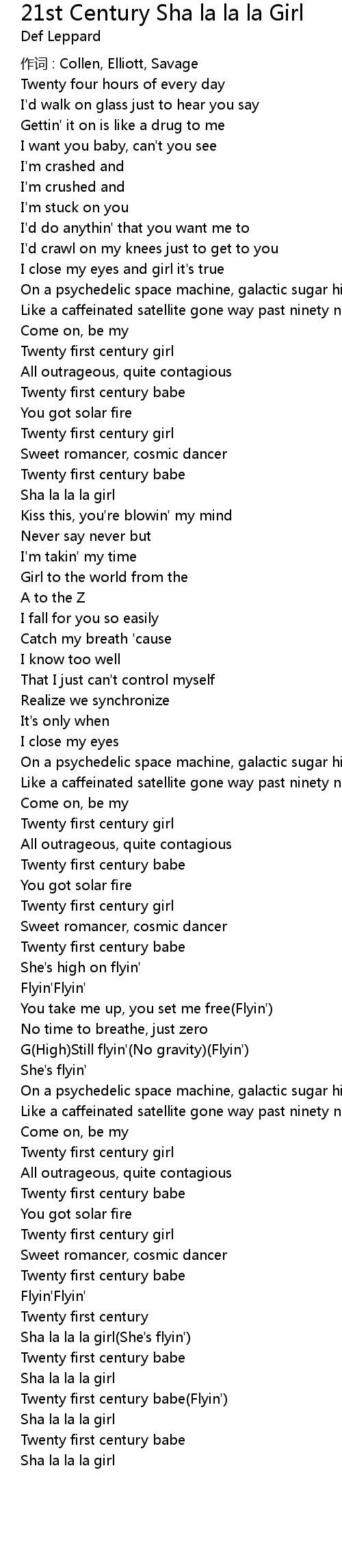 | 作词 : Collen, Elliott, Savage | |
