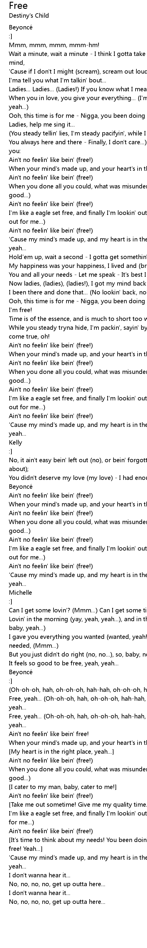 | Free, yeah... Ohohoh, hah, ohohoh, hahhah, ohohoh, hahhah... Free, yeah... | |