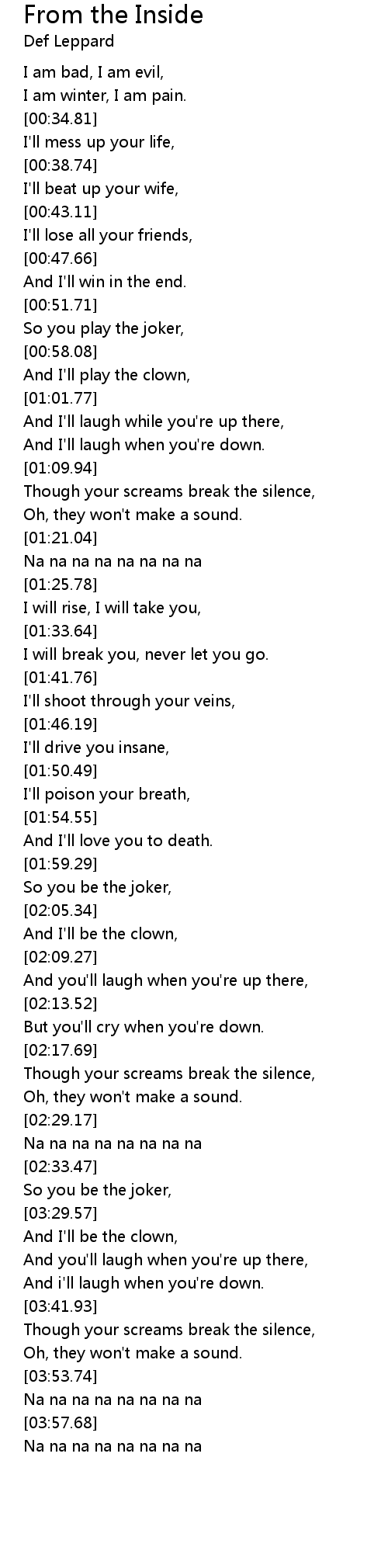 From the Inside Lyrics