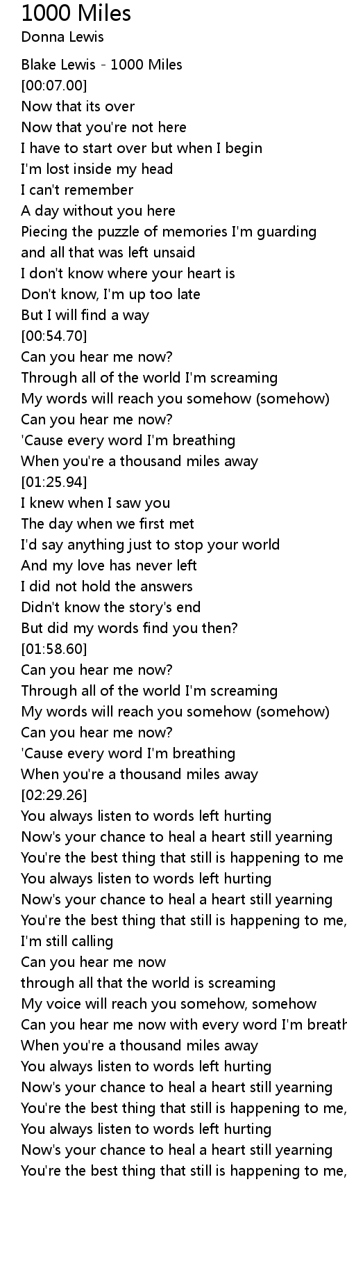 When you're a thousand miles away |