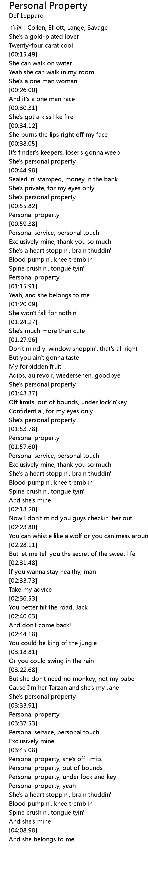| [03:31.43] | She' s personal property |