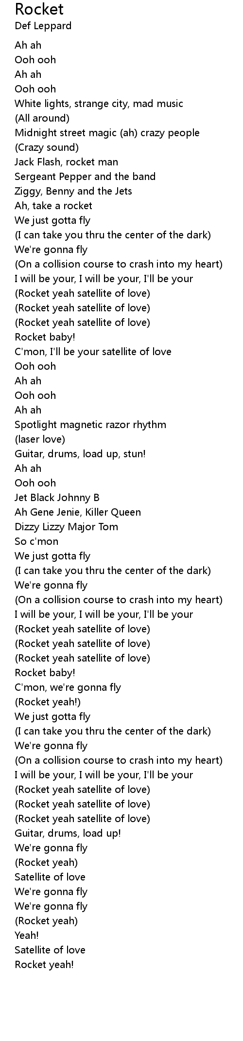 (Rocket yeah satellite of love) |
