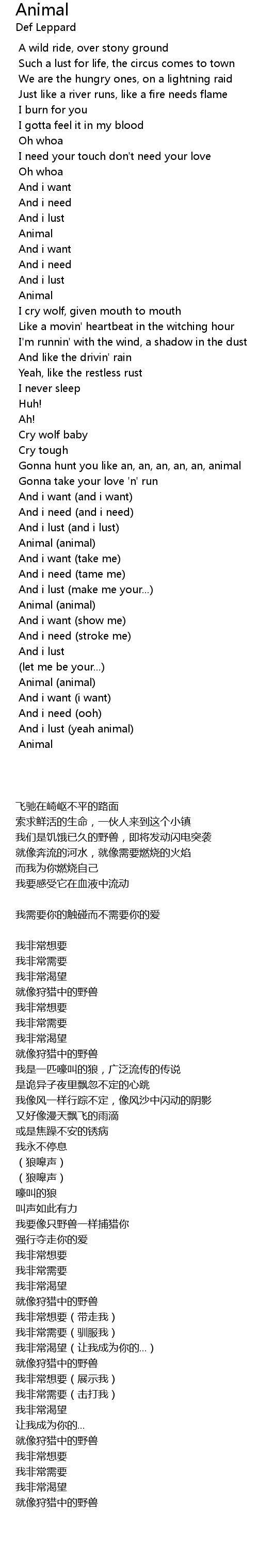 And i lust (yeah animal) |