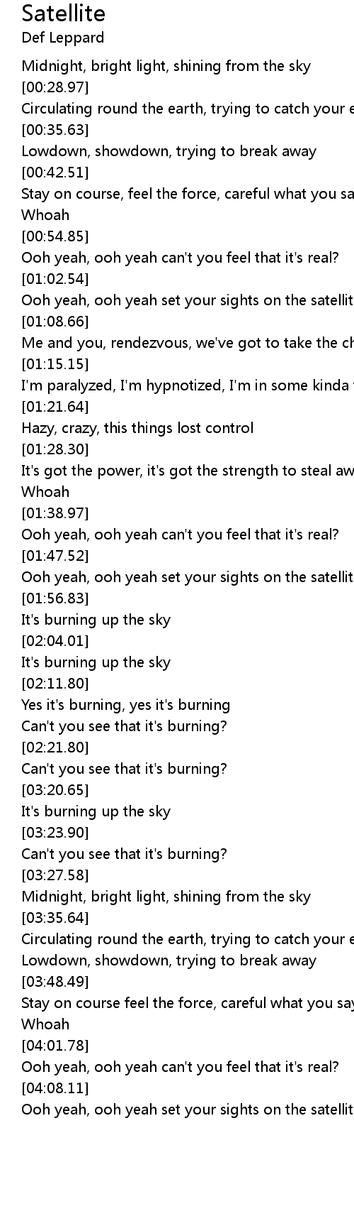 Ooh yeah, ooh yeah set your sights on the satellite |