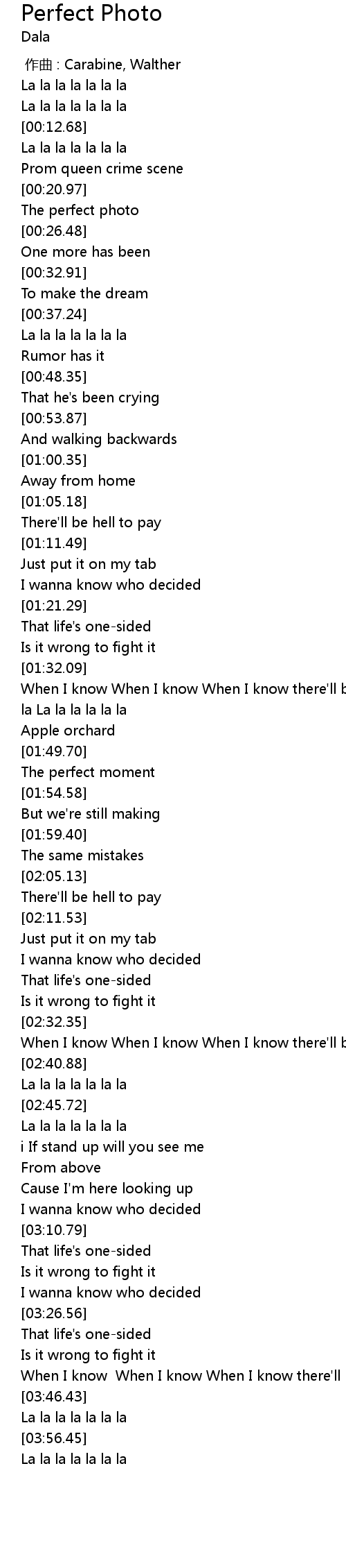 | [00:23.23] | The perfect photo |