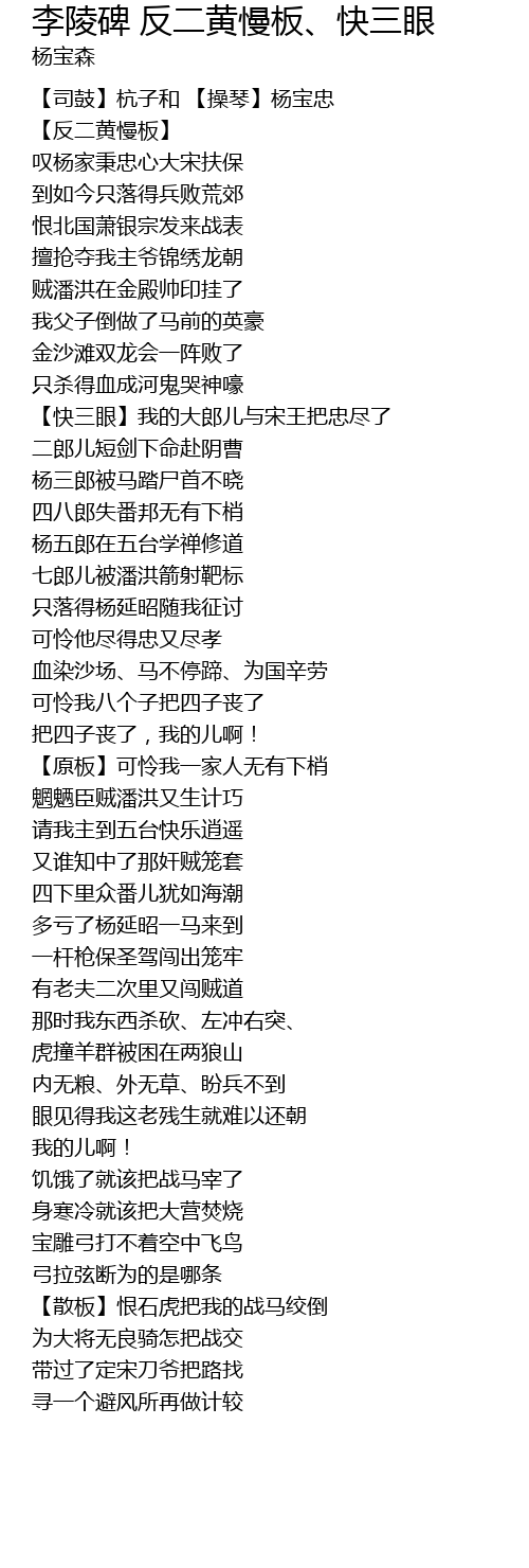 | Song | 李陵碑 反二黄慢板、快三眼 |
