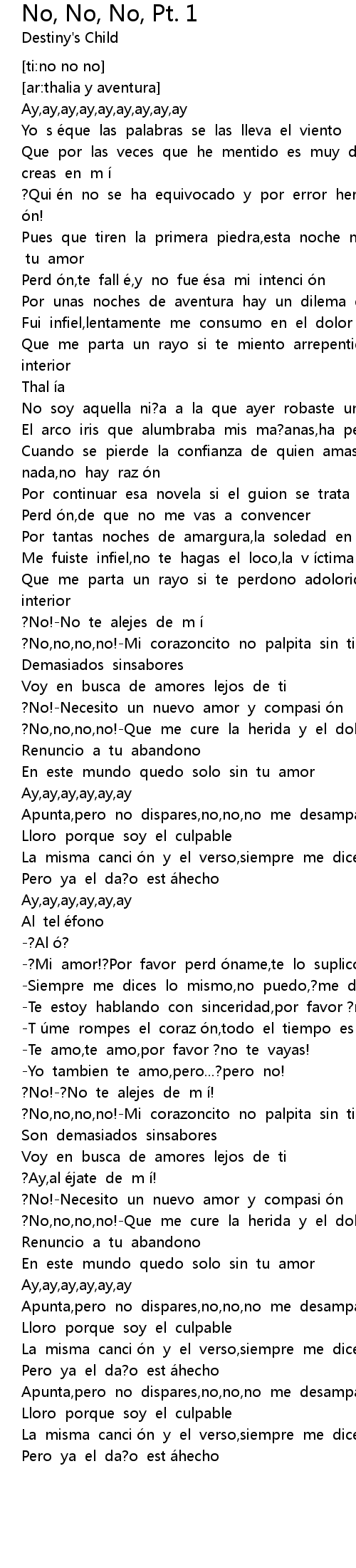 | [02:57.216] | ?No,no,no,no!-Mi corazoncito no palpita sin ti |