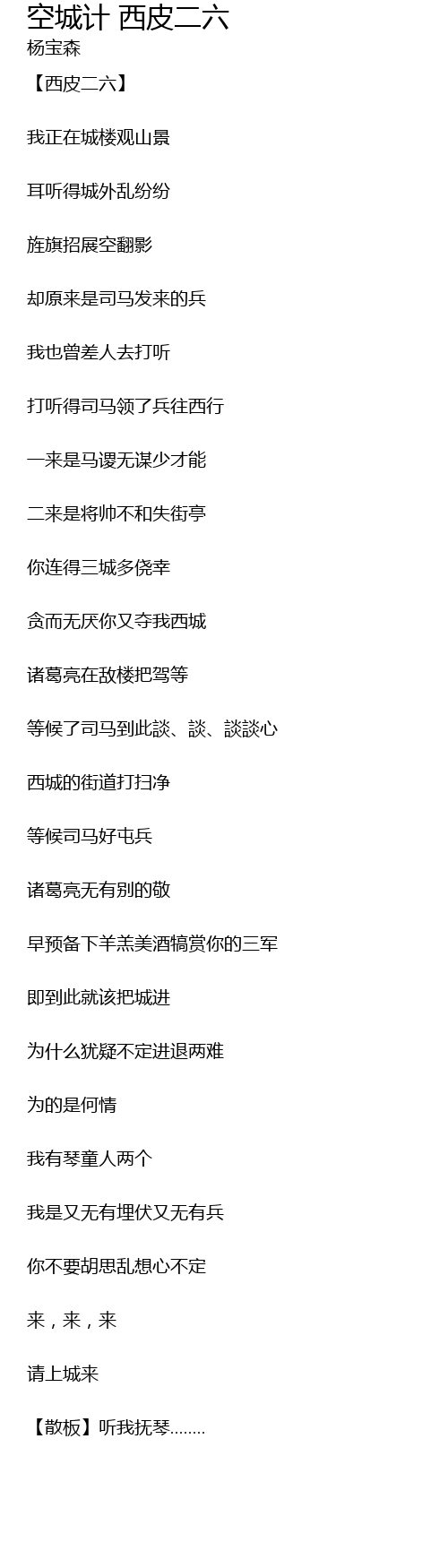| [02:21] | 我是又无有埋伏又无有兵 |