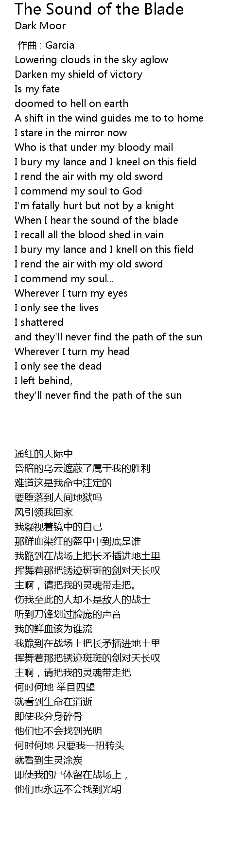 | [01:14.92] | I bury my lance and I kneel on this field |