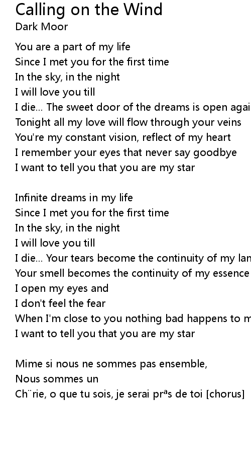 | Song | Calling on the Wind |