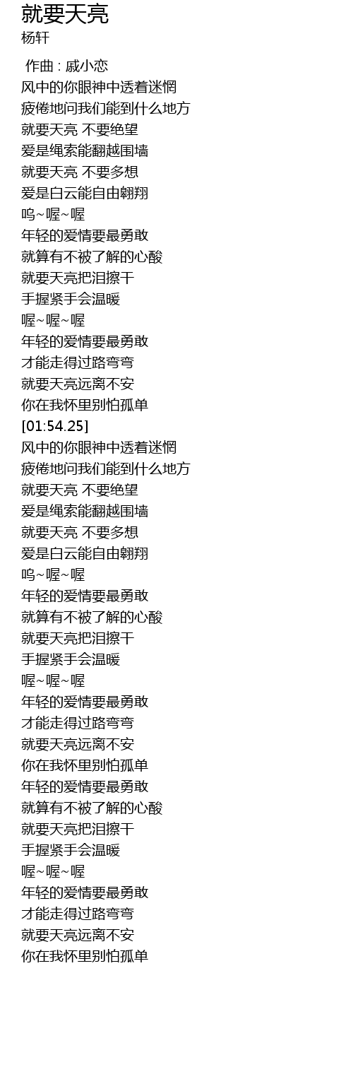 | [01:01.54] | 就要天亮 不要多想 |