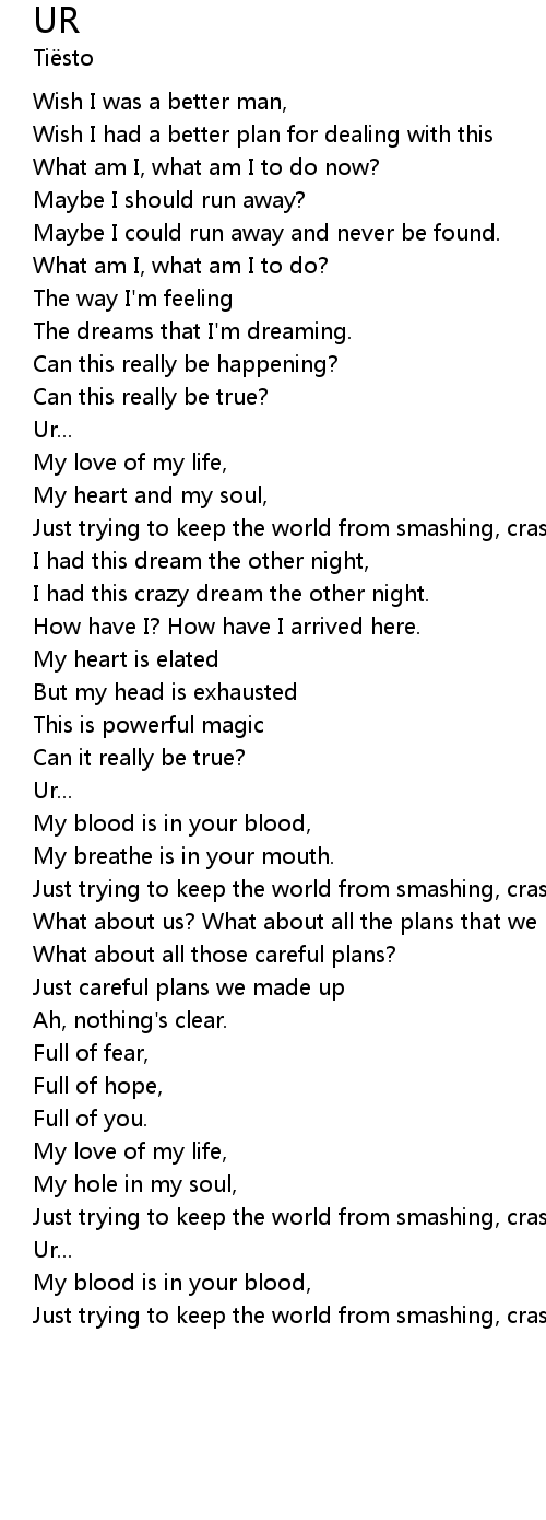 Just trying to keep the world from smashing, crashing in. |
