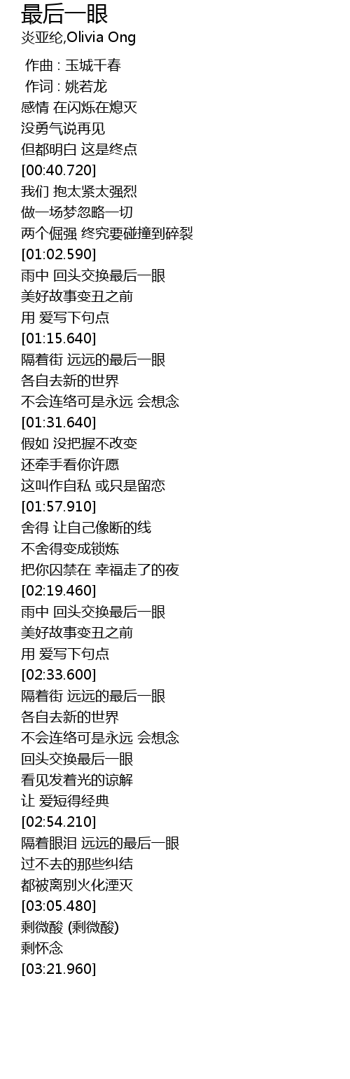 | [02:54.760] | 隔着眼泪 远远的最后一眼 |