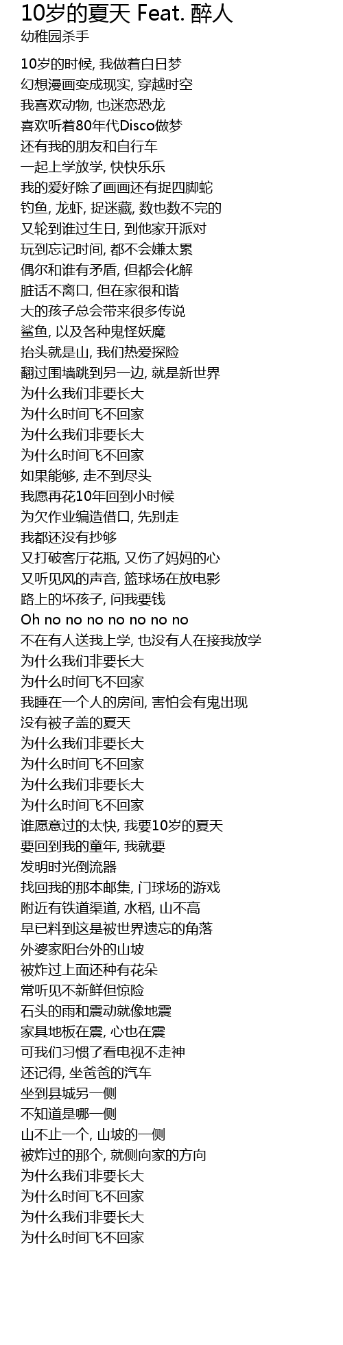| [02:16.12] | 谁愿意过的太快, 我要10岁的夏天 |