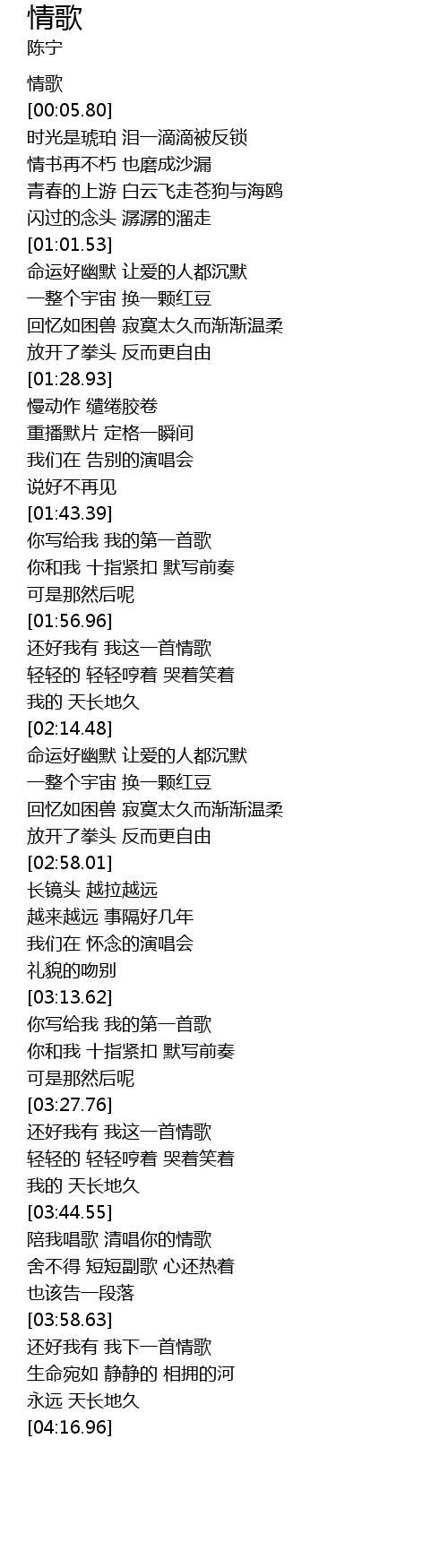 | [01:57.33] | 还好我有 我这一首情歌 |