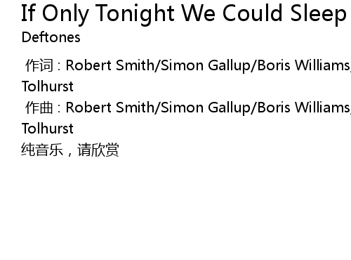 | [00:01.000] | zuò qǔ : Robert Smith Simon Gallup Boris Williams Porl Thompson Lol Tolhurst |