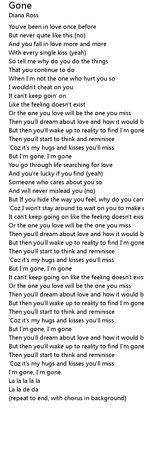 But then you'll wake up to reality to find I'm gone, I'm gone