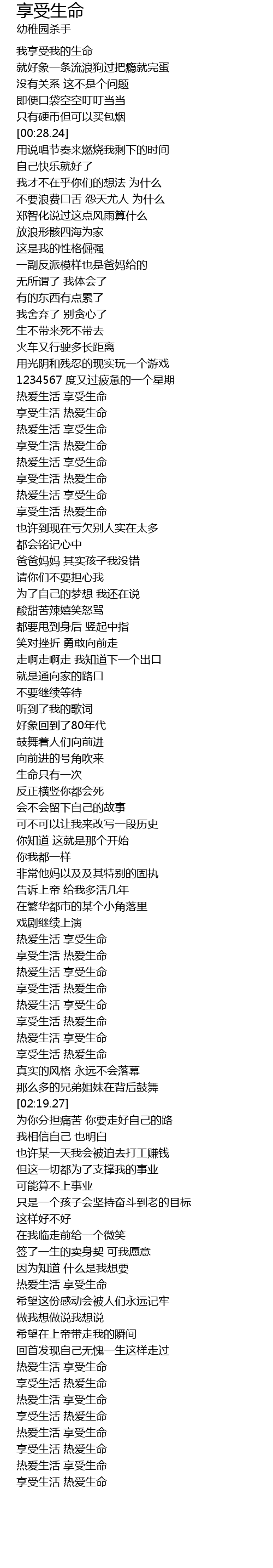 | [02:02.39] | xiǎng shòu shēng huó rè ài shēng mìng |