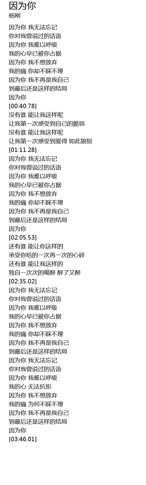 | [03:04.55] | yīn wèi nǐ wǒ wú fǎ wàng jì |