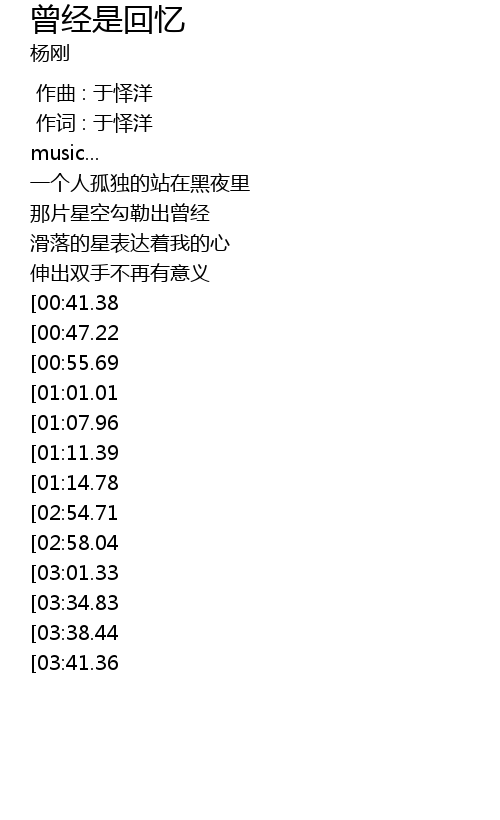 | [03:21.37][02:54.71][01:21.49] | 曾经我们的回忆 |