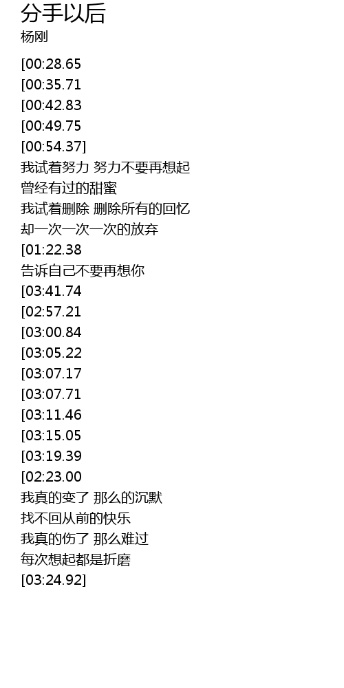 | [03:57.33][03:07.71][01:39.57] | gao su zi ji bu yao zai ai ni |