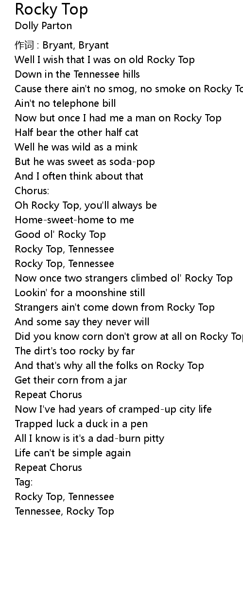 | Cause there ain' t no smog, no smoke on Rocky Top | |